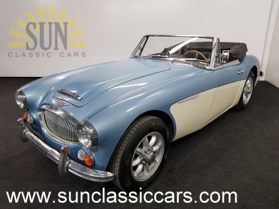 This is a 1965 Austin-Healey. The car is in a driver's condition. This is the Austin-Healey in the colour combination Ice Blue with Old English White. The paintwork looks neat with traces of use. The powerful 6 in-line engine runs. The Austin-Healey comes with its American title, the import duties are paid.