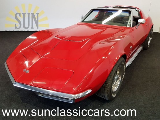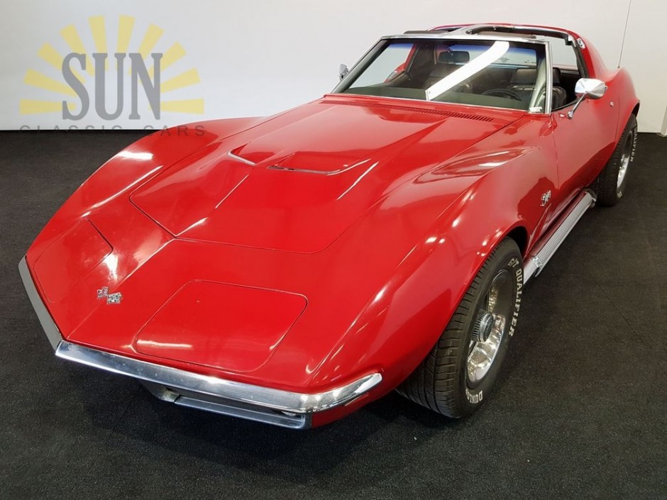 This is a 1969 Chevrolet Corvette C3 Stingray. Original delivery of this C3 was with the popular round taillights and chrome bumpers at the front and back. The car drives, stops, shifts gear and is in neat condition. The car also has the original side pipes with new chrome covers, the 350 CUI, V8 engine and the manual gearbox. The Corvette has American title and import documents.