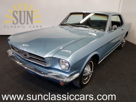 1965 Ford Mustang Coupe, new paint in the original Mustang colour Tahoe Turquoise. He has the original 6 in line engine with automatic gearbox, a black pony interior, beautiful chrome, and the beautiful original wheel covers with white wall tyres. The Mustang has American title, import taxes are paid for.