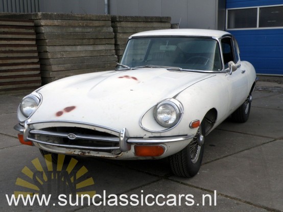 This is a 1969 Jaguar E-Type. It is a solid restoration project. The bottom is still very solid. The 4200 CC, 6 cyl, 265 HP turns by hand. This Jaguar has the popular manual gearbox. This Jaguar E-Type has american title, importtaxes are paid for.