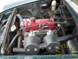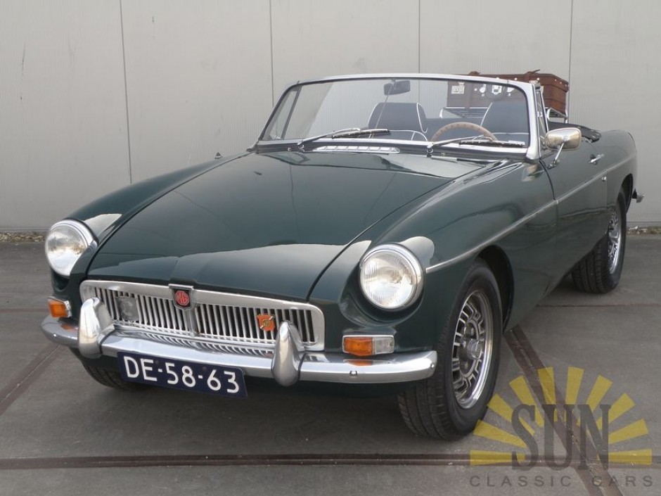 MGB in the beautiful colour British Racing Green with a couple of nice and very popular options including the rare V8 rims, overdrive, wooden steering wheel from ‘Moto Lita’ and very nice leather seats.