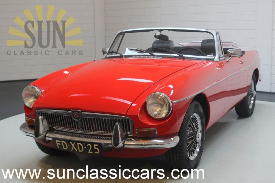 This MG B cabriolet was delivered new in the year 1968 and is in good condition. The MG is in the colour Flame Red combined with a black leather interior with red piping, wire wheels and a chrome luggage rack. Furthermore, the car is equipped with the 1798cc 4 cylinder engine in combination with the manual 4-speed gearbox. In short, a MG B cabriolet in good condition for a lot of driving fun. The MGB is provided with Dutch license plate and MOT.