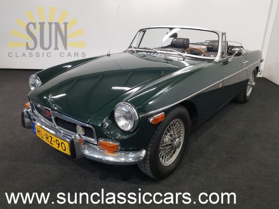 This is a 1974 MGB cabriolet. The MG is in a good condition. The car is equipped with wire wheels, double carburettors and the fantastic colour Britsh Racing Green. The MG has Dutch registration and a valid APK inspection.