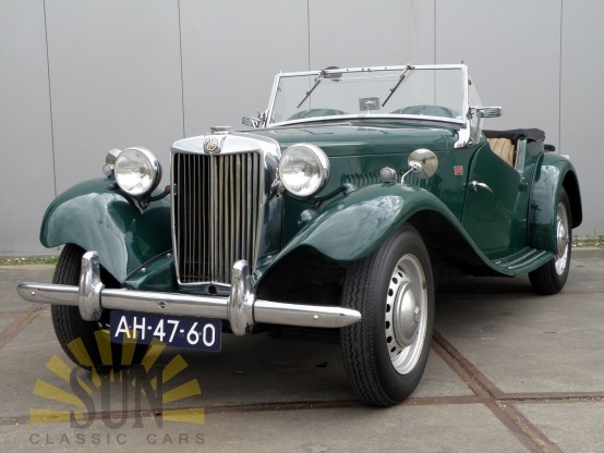 This is a 1950 MG TD. The car is in neat condition with some traces of use. This MG has the very popular colour British Racing Green. The interior of the car is in neat condition. The matching numbers 1250 CC, 4 cyl, 55 HP engine runs very good. This MG has Holland title.