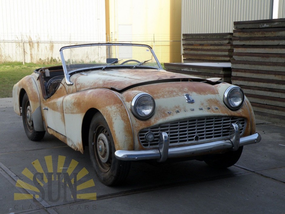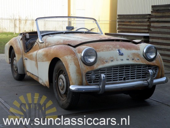 This is a 1959 Triumph TR3A. It’s a restoration object. The car is for the most part complete. This Triumph TR3A has his first paint. This makes that it’s obvious there was no filler used. The car is a very original car. The 1991 CC, 101HP, 4 cyl engine is loose and turns by hand. This Triumph TR3A has American title. Importduties are paid.