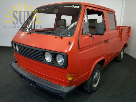 This is a 1980 Volkswagen T3. The Volkswagen is a very nice car to drive now and to refurbish in the meantime. The engine is running. The car drives, brakes and switches. This is a very special Doka version, which means that you can sit with several people. The Volkswagen comes with documents from Bosnia.